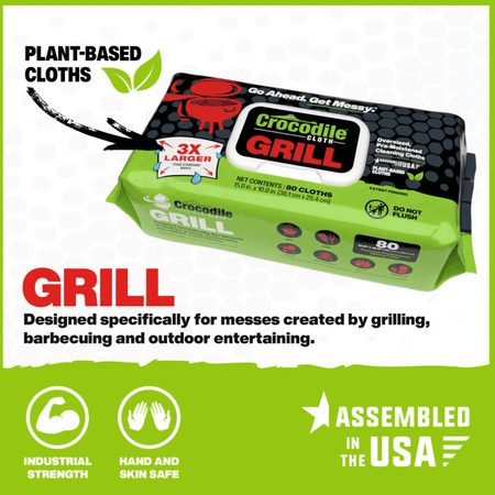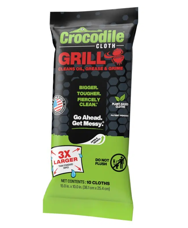 Crocodile Cloth® Grill Wipes were specifically designed for grillers, barbecuers and outdoor entertainers. These tough cloths power through sticky, baked-on grease and food on the grill and cooking accessories. They are also perfect for breaking down layers of grime on coolers, patio furniture and other items stored outdoors.