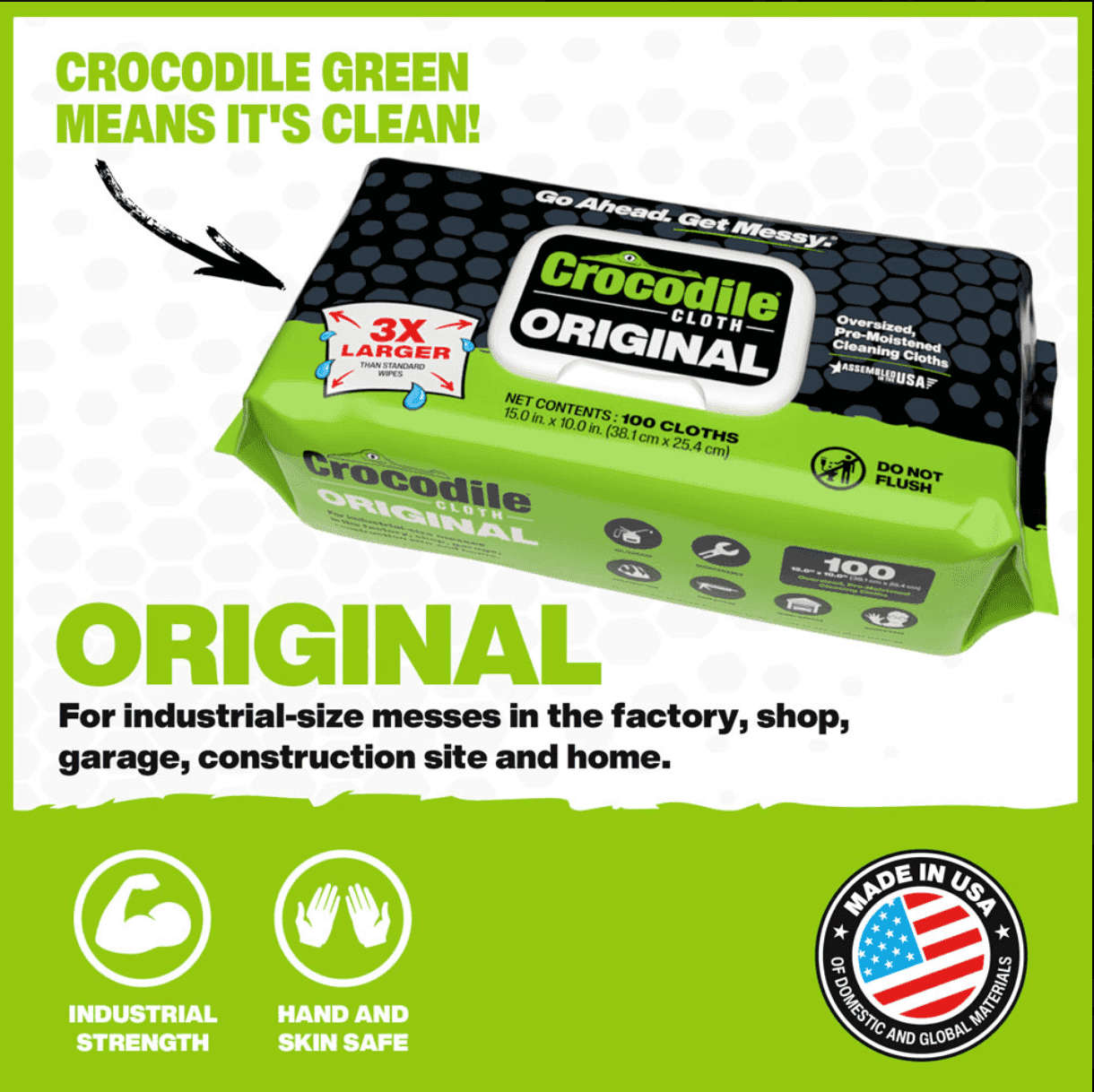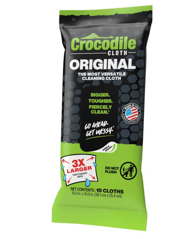 NO MORE WIMPY WIPES: These oversized wipes aren’t just tough on messes, they’re incredibly strong and are no match for the competition. Crocodile Cloth are 3X larger than standard wipes and are proudly Made in the USA of domestic and imported materials.