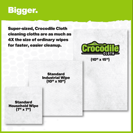The Original Crocodile Cloth was designed for cleanup of industrial-size messes in greasy, grimy workplaces. This tough, general purpose cleaning cloth tackles all kinds of messes found in industrial, manufacturing and construction environments.