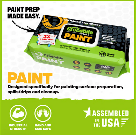 IDEAL PAINTING ACCESSORY: Crocodile Cloth® specially designed this cleaning wipe not just for painting related messes, but for painting surface prep. Use for damp-dusting or removal of oils, adhesives & residues prior to painting.