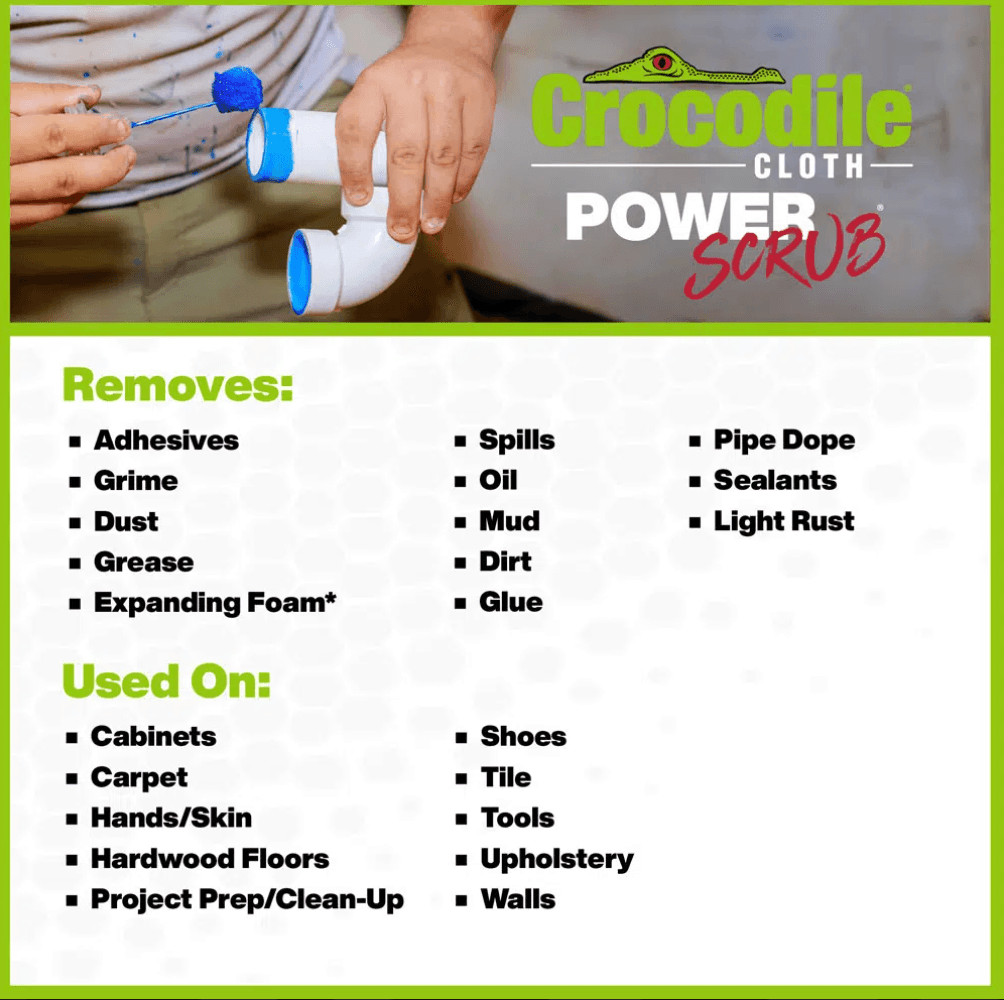 DUAL-SIDED ACTION: Scrubbing side is textured to scour through dried-on, baked-on or caked-on grease & grime on hands, tools & surfaces. Follow up with the smooth side to wipe the gunk away.