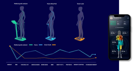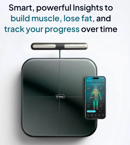Most smart scales only measure through your feet. The Hume Pod uses hand + foot sensors and segmental measurement (arms/torso/legs separately) for a more complete body scan and better trend tracking. .