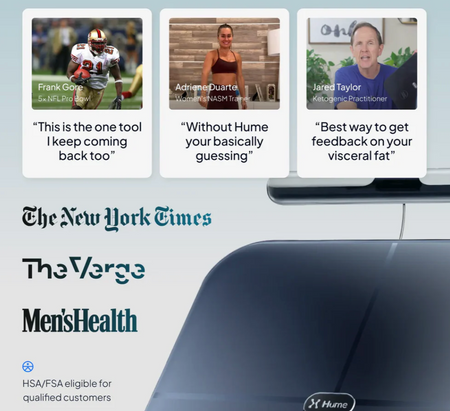 Hume cites independent testing and site materials indicating results within a few percent of DEXA (DEXA is commonly referenced as a gold standard for body composition).